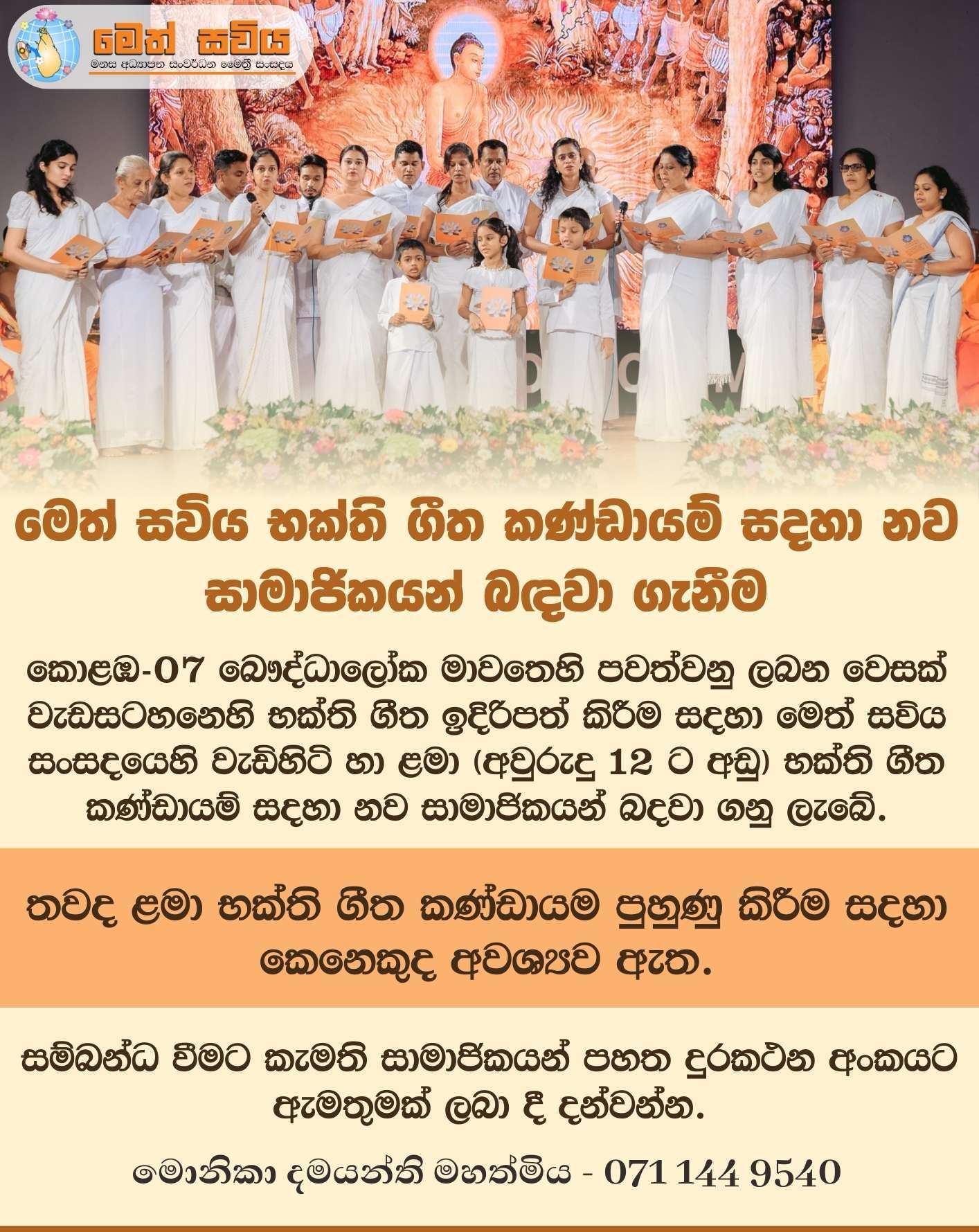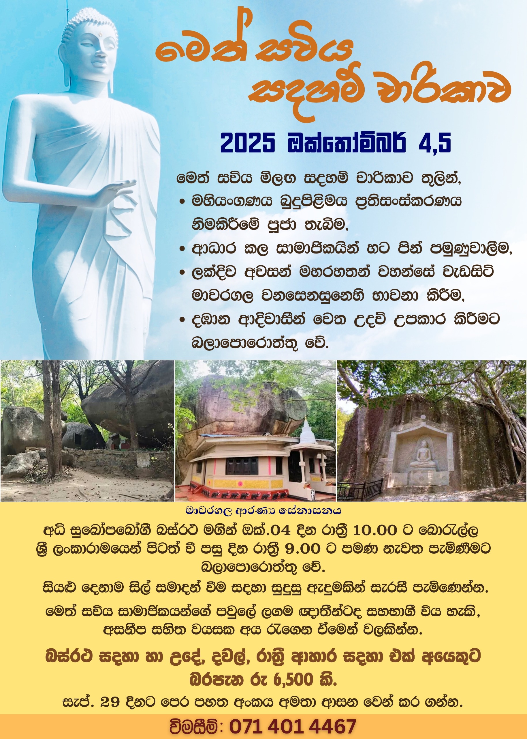 භාවනා කම්මට්ඨානාචාර්ය මෙත්සවිය නිර්මාතෘ මහාචාර්ය චන්දන ජයරත්න මහතා විසින් කරනු ලබයි.